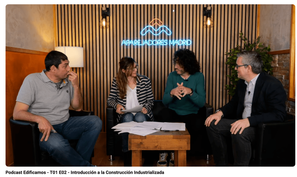 La conversación se centra en proyectos actuales en Madrid que muestran técnicas de construcción industrializada. 9m43s